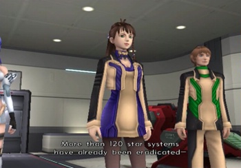 WHAT THE SHIT!?! Okay, the gnosis were really annoying in Xenosaga Episode 1, but the worst they ever accomplished was destroying the Woglinde. When they attacked the Elsa or the Kukai Foundation, they just kinda wrecked up the place and called it a day. Now it turns out the gnosis have destroyed 120 star systems!? … Does that unlock Yoshi? Eh, for reference, in reality, humans currently exist in one (1) star system.