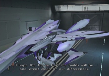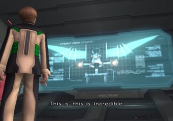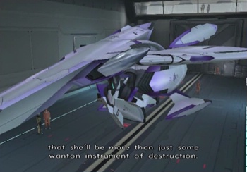 So this is a craft built for KOS-MOS that allows her to traverse space without using the UMN. In modern day terms, everyone is driving cars, and Kevin just invented a jet.