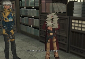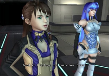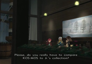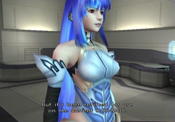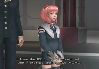 Shion is more interested in KOS-MOS’s new toy than the destruction of the entire human race.