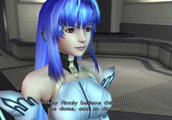 Shion steps out and considers this whole “KOS-MOS will save us all” thing.