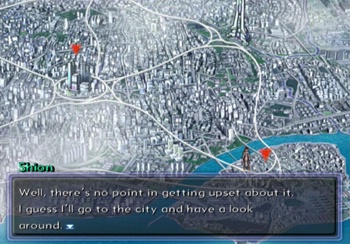 Here’s the “World Map” for Second Miltia. There are six or so landmarks, and two of them you’ll be visiting a bunch (if you’re doing all the sidequests). The rest are primarily plot related, and you’ll swing by once or twice.