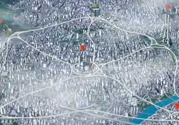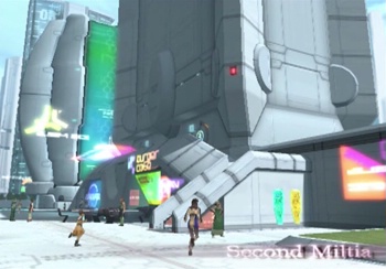 Second Miltia consists of two very large screens filled with buildings and wandering NPCs.