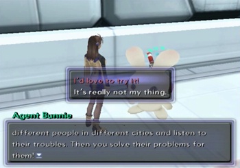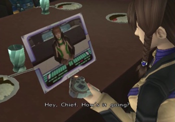 So chaos scurries off to MOMO’s UMN recital, and Shion heads to Vector. The game follows chaos to the UMN Control Center, but we’re going to take a break before we get to that little adventure. For right now, we’re going to take a respite to consider what it means when the game has two high-octane, breakneck action scenes… and then follows it up with boring family drama that coincidentally reintroduces the series’ heroine. Gosh, if I didn’t know any better, I’d say someone up there doesn’t like Shion…