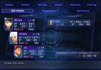 But keep an eye on this woman outside Luty’s room. When I say “go”, complete her GS Quest immediately. I’ll cover it during the previously mentioned sidequest update way the hell later, but the prize is the Secret Key that unlocks Psycho Pocket, aka the Steal command of Xenosaga Episode 2. You’re going to want that for so many reasons. Reminder: there are no shops in XS2.