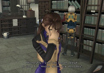 So, after Xenosaga Episode 1, Shion has decided she’s going to become an adventurer. Jin thinks this is a poor, possibly suicidal idea.