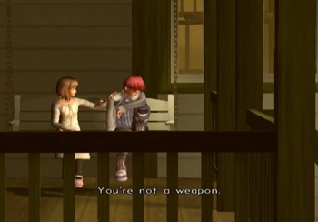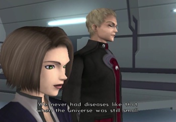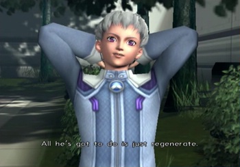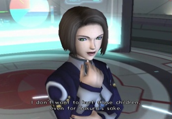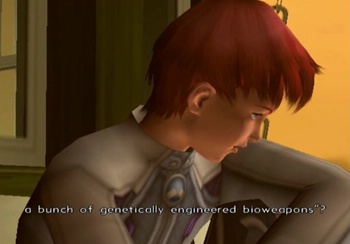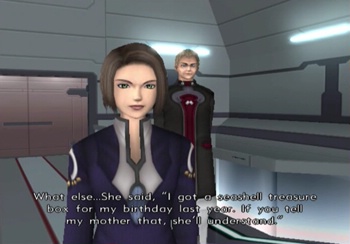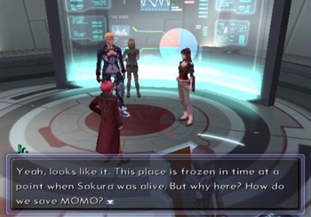 Incidentally, as this scene ends, I’ll note that this whole bit is likely a rare case of Xenosaga subtlety. Albedo is jealous of the relationship between Junior and Sakura, so, a decade or so later, Albedo picks up the habit of torturing 100(ish) Series Realians, because they all look like the girl that took his brother away. MOMO, of course, is the queen of Sakura simulacrums, so she’s Albedo Enemy #1.