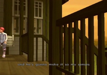 Skip around the garden a little more and you’ll trigger another cutscene that apparently occurs a little later. Seems Junior grabbed a harmonica and is now playing sweet music with his virtual girlfriend. But this symphony is not for free, and we don’t ever get to see Junior actually doing that.