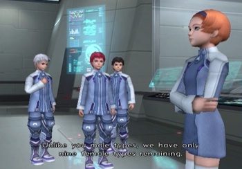 Looks like there’s a high mortality rate for the girls. The backstory for this involves something like URTVs are “naturally” male, and their chromosomes have to be modified to be female, which leads to genetic instability, and… eh, it’s all just an excuse to justify the complete lack of girl URTVs in Episode 1.
