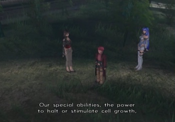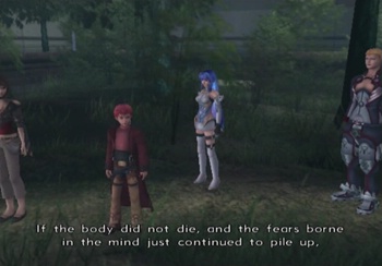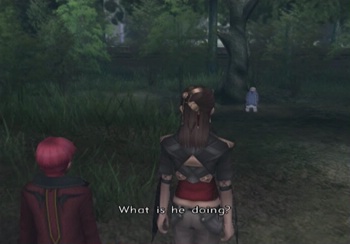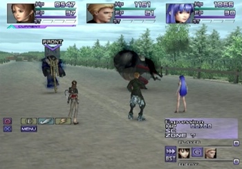 La la la, fighting battles and wandering through nondescript forests. I don’t think we ever needed another generic wooded dungeon after the 16-bit era of JRPGs. It’s pretty much unforgivable to stick such a boring one in a game that takes place a few millennia after Earth. And we had one last game, too!