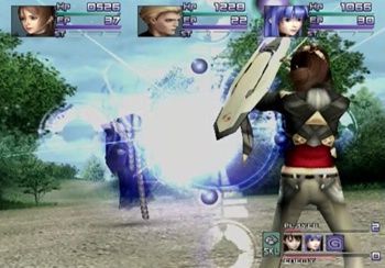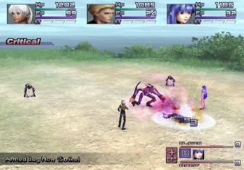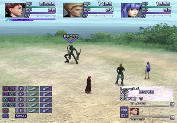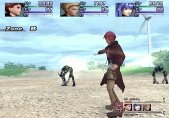 And KOS-MOS is the only member of your party to use the Special command (outside of an ES… does anyone remember those at this point?) She can perform a special attack (like summoning her chain guns of doom) at the cost of some stock… but the special attacks aren’t that great. Like a lot of the Xenosaga Episode 2 Battle System, they’re extremely situational, and most of the time you’d be better served using your stock on actual, regular attacks.