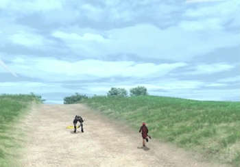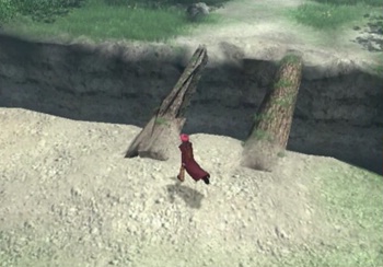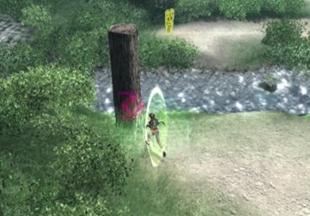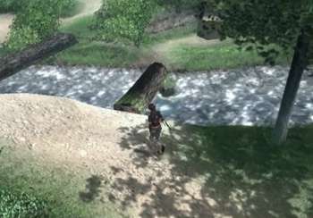 Just to spice things up the tiniest bit, you get to fell this tree to cross a river. I’d be upset about the heroes destroying nature to cross a stream that appears to be ankle deep… but it’s a double virtual world, so the environment is safe.