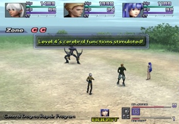 Level 4 is Xenosaga Episode 2’s ultimate expression of the whole “stock in the beginning, then pound it when it gets dicey” boss thinking. Level 4 is practically comatose when the battle begins, but he’ll ramp up as his health goes down, and become a real nuisance if you let the battle go too long.