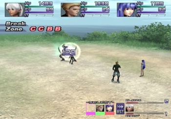 You may have noticed that, with the “Break Zone” concept and various elemental/situational weaknesses, there a number of ways to kill your enemies. This is good! Unfortunately, the designers of XS2 noticed this, and started inflating monster HP and defenses to ridiculous levels. Now, to be clear, this isn’t a Working Designs situation where the monsters last well past the point of being boring thanks to modified values; no, what’s happening here is that you’re basically expected to find the “trick” to every monster, and then repeat that trick for every encounter. If a monster is weak to ice and has a break zone of AB, you’re supposed to ice-up your weapons, hit that AB break zone, and then boost in some more super blows. If you ignore that strategy, you’re pretty much asking for the battle to double or triple in length.