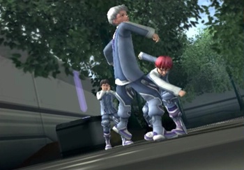 Here’s where we try to science up a reason for Junior and Albedo’s powers. Junior has the ability to “stop” cell growth… which I’m pretty sure would be instantly fatal. Your cells are doing stuff for a reason, Junior! Anyway, that’s the reason Junior is still a “kid” while Albedo and Gaignun grew up: he is literally and metaphorically in a state of arrested development.