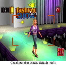 Next we have what one would likely expect from a Mary-Kate and Ashley Olsen game: trying on clothes! Oh boy! Fash (which certainly sounds like what a forty year old game developer would think the cool kids are saying) is a trendy clothing store that transforms into a complete fashion show. You’ve got to pick out the outfits for the twins, and then the game portion occurs when you have to take perfect pictures of these newly discovered models.