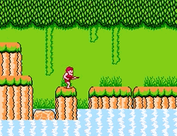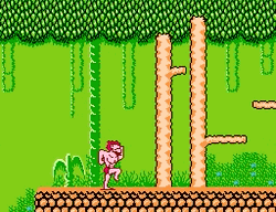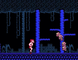 Amagon is woefully ill-equipped for this mission. Right from the start, monsters swoop, pounce, run, and spring out of every nook and cranny. In fact, the enemy distribution of this game has a lot more in common with Gradius or R-Type than Mega Man or Contra. All Amagon has to rely on is his simple little gun, which fires one to three bullets straight ahead. And that’s it. He can’t shoot up, he can’t shoot at an angle, and the ever popular duck ‘n shoot isn’t going to do a thing against the scads of flying monsters overhead. And this is going to end poorly for Amagon, because he’s living in an instant kill world, so merely tapping that murderous dragonfly is going to mean a restart. Luckily, the stages aren’t terrible about checkpoints. Unluckily, you’ve got three lives to beat this game, and that’s it. You might get lucky with a 1-up or two, but otherwise you’re stuck back at Level 1 after every three deaths, and good luck reaching the Death Hippo when you’re constantly defeated by frogs.