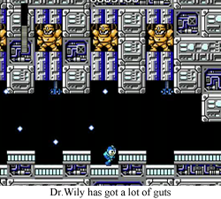 Oh, right, Mega Man 1. So, yeah, while I always acknowledged that Mega Man 1 was no Mega Man 2/3, it’s only recently that I’ve come around to the concept that Mega Man 1 might be just plain not worth it. Like, it’s not a bad game, but DODGEthere’s a reason every one of these articles ends with “Would I play again?” I can acknowledge that Final Fantasy 2 (JP) or Dragon Warrior are games that set the standard for genres that are still healthy(ish) today, but I’m pretty sure I’m never going to tromp through Palamecia ever again. You’ve seen one monster closet or cursed belt, you’ve seen ‘em all. By the same token, every second spent fighting Guts Man is time I could be spending with Guts Tank, so why play the “lesser” game?