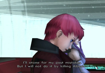 Let’s talk about Jin for a second. Was Jin supposed to be in the party all this time? This is more random conjecture on my part, but consider Jin’s clunky as hell “I’m leaving now” and his triumphant “surprise” entrance all of ten minutes later. And consider this scene, which would be the first time Shion and Jin are actually canon interacting after fighting together through two dungeons. I really want to say that the original intention for Jin was to have him be a badass member of the prologue party, reintroduce him as “a retired man of peace” (recall the scene of Helmer convincing Jin to join the mission), and then have the previous update’s Margulis battle as his “oh my gosh he’s still got it!” reintroduction to the battle party (and make it a “surprise” when he’s suddenly part of your party for the boss battle itself).