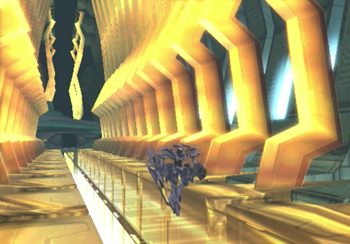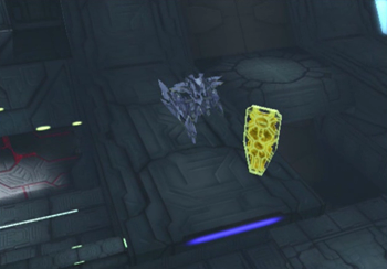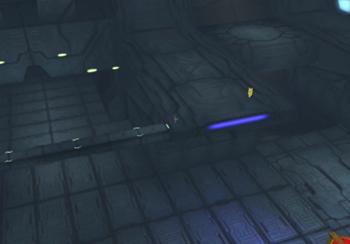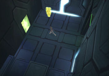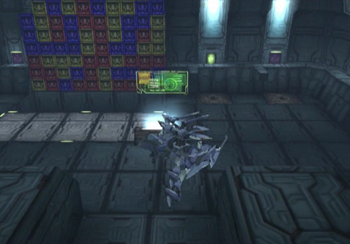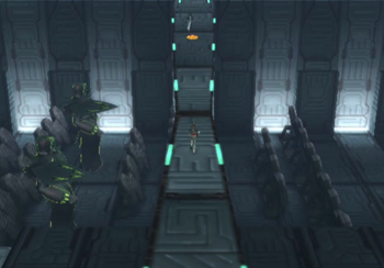 If you stay in your ES and don’t solve the block puzzle, you’ll venture thought a couple more boring hallways and fight a few more boring AMWS. You can imagine why I didn’t capture that thrilling adventure. Both routes will eventually culminate at this… thing.