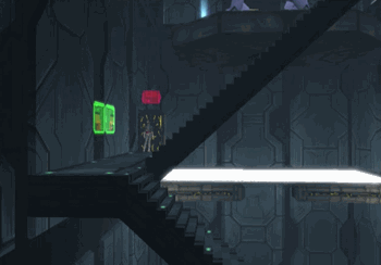 There are two elevator gates along the way down, and you have to press the release switches with perfect timing to grant your ESes safe passage downward. If you’re too slow to a switch, or press it too quickly, the elevator will bump, and then go aaaaaall the way back up, and you’ll have to start again. It’s not the hardest thing in the world, you just have to have great timing, else you’re stuck literally waiting for an elevator. Old Miltia exploding was sad; playing a game based on waiting for an elevator is a tragedy.