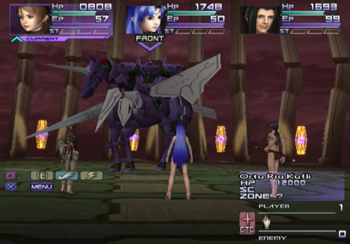 Cathedral, like most churches, is kinda sexist. It starts out with pretty basic attacks, but it will eventually switch into a different mode. What determines this mode is the gender of the character with the last attack: Cry of the Rapture is triggered by a woman, and it has strong ether attacks, while Call to Arms is triggered by a man, and it has strong physical attacks. You know your own defenses, so try to steer the church into whatever you’re comfortable with. Note that XS2 allows for parties that are completely female (Shion, MOMO, KOS-MOS) or male (Junior, Ziggy, chaos, Jin).