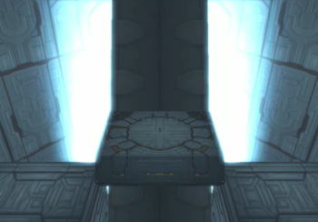 Our next ES stop appears to be on some kind of elevator. Either that, or the giant X is a trap, and Albedo is about to drop an anvil on the party.