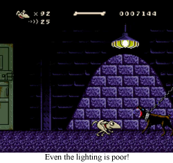 So, because Family Dog, ya know, existed, it received a SNES platformer. It worked for Tim the Tool Man Taylor, so why not use a character that practically already exists in pixels? I actually played this game as a rental back when I was a wee Goggle Bob, because I liked the show, and Super Castlevania 4 was probably already taken that week. I don’t recall getting past the first world, and I know this because I would definitely remember seeing what came next.