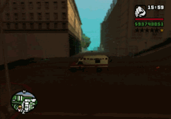 I was just recounting how videogames run by their own rules, and nobody gets a bonus for heeding traffic signals in GTA, but apparently AIs that live in GTA universes pay attention to the rules of the road, even when a capricious player destroys those rules. GTA:SA feels like the last GTA game where causing mayhem was the be all and end all, and it even includes these “little things” like watching every NPC slam into every other NPC. Oh, speaking of mayhem…