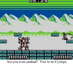 Favorite Boss (Adventure Rebirth): Meanwhile, the boss of this Stage 2 is an ersatz Incredible Hulk, and no one can tell me otherwise. He gets my vote.- What’s in a name? The original American release of Castlevania Adventure misidentified Christopher Belmont as Simon Belmont. It doesn’t impact a single thing (as the game has no plot beyond “kill vampire now”), but it was officially retconned by Castlevania Adventure 2, when Chris had some family issues that never impacted single Simon.