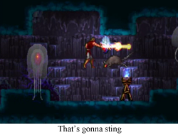 As for ReBirth, it’s definitely nice that we saw one more good ol’ classic style ‘vania. Still like to play it now and then ‘cuz it’s less of an asshole than most of the other old school style games. Only real gripes are that the visual assets are a mixed bag and there’s less love put into level designs that make sense layout-wise. “Sure, I just walk down that staircase into the water that served as a bottomless pit into an area that isn’t underwater and has its own water bottomless pit. k whatevs”