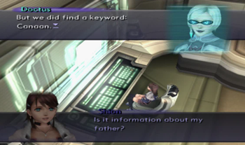 So remember the hack job from the opening of the game? Apparently they didn’t score much new evidence except some info on a mysterious “keyword: Canaan”. I wonder if that has anything to do with anyone we know. Like, ya know, Canaan.