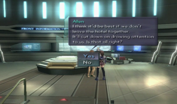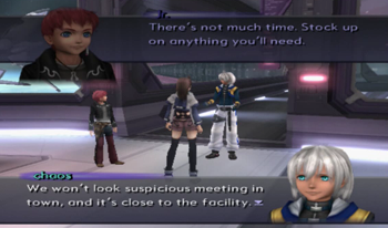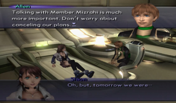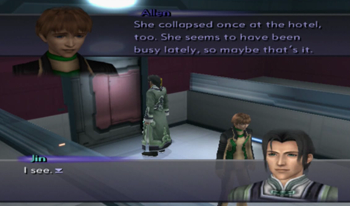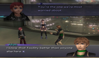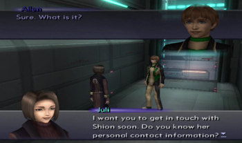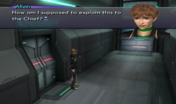 When you’re ready to rescue KOS-MOS, tell Allen it’s time, and we’ll fast forward to the espionage hour.