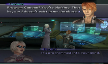 Doctus wants to interrogate Canaan about Program Canaan, but he’s got no clue what’s going on here. Really, Canaan, your own name isn’t in your database?