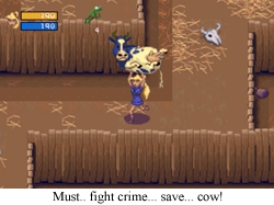 Despite the name, Herc’s Adventures is not an adventure game (well, it’s what I define as an adventure game [which means it fits the criteria of “kinda like Zelda”], but it’s not what Lucasarts defines as an adventure game). Herc’s Adventures is a more action-y game, and plays much more like Lucasarts’ other excellent console experience, Zombies Ate My Neighbors. The gameplay is much the same, but Herc’s Adventures eschews the schlock horror aesthetic of ZTMN for a tongue-in-cheek look at the myths of Ancient Greece. Hera, Goddess of Fertility and wife of Alpha God Zeus is still a goddess… but now also a stereotypical overweight