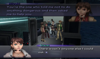 Honestly, I have no idea why the designers didn’t just go ahead and make Miyuki a permanent party member. She doesn’t really do much from this point on in the story, she could have easily tagged along and been another party mage. Maybe the writing staff just got tired of figuring out new ways for Shion to insult her.