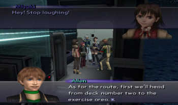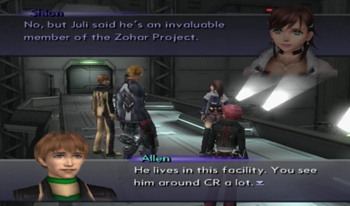 Miyuki is apparently on the team because she’s a l33t haxor, and Allen has the best knowledge of the layout. Shion sees this whole adventure as something like “take your infantile children to work day”.