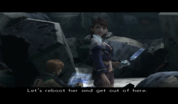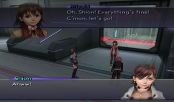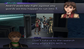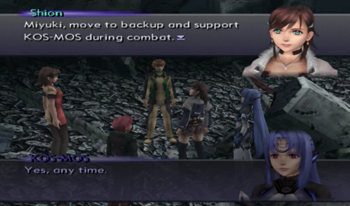 KOS-MOS confirms that she’s good to go, so Miyuki is demoted to Allen-level guest status.