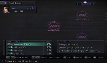 But everybody else can! It’s not like you have enough SP to “buy” anything at this point, but at least you can scope out the possible skills if you want a little preview of specialties. Jin learns Armor Pierce right off? Man, somebody on the XS team liked Auron…