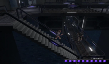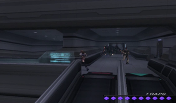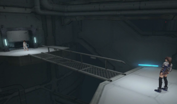 Anyway, the next area is a shiny series of platforms. I think this is supposed to be the sort of “above” staging area of the demonstration zone. This is where the gaffers corral gnosis or something.