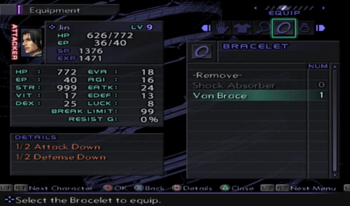 This is one of those things I was complaining about during the equipment discussion. “Acquired Van Brace” tells the player nothing, so, pretty much any time you find a new treasure, you have to bop into the menu and check out what kind of accessory you acquired, what it does, and whether it is better than anything your party is currently wearing. And even then, descriptions like “1/2 Attack Down” sound more like something that stunts your attack or something, but, no, it’s referring to the fact that you’re more resistant to “attack down” status. The whole experience seems to make the game slower, which is never good.
