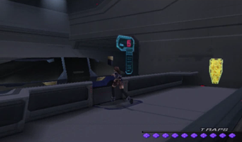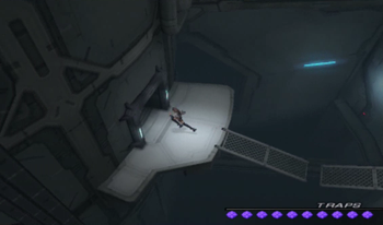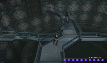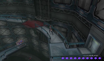 I complimented XS2 on acknowledging XS1’s sucky, mute dungeons as a bad thing, and adding background music and puzzles to break up the monotony of boring hallways filled with monsters. Unfortunately, XS3 reverted to the old ways, and occasionally tosses you a dungeon (like this one) that is completely silent. Wait, my bad, it’s not completely silent, there’s a constantly repeating PA system announcing nonsense like there’s been a break-in or Abel is missing or whatever. This gives the area less a feeling of late-night espionage and more that you’re in a super market near closing and, “would the owner of a red Celica please report to the parking lot. You parked over four handicapped spots…”
