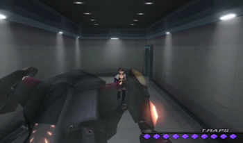 Incidentally, there’s nothing to this little starting area except the save/shop plates. Otherwise, you just walk onto yet another monorail. I only bring this up because when you may reenter this area later, you still start at the same “nothing” opening area and have to wait for this stupid monorail. Not that I’m bitter or anything…