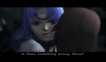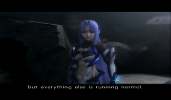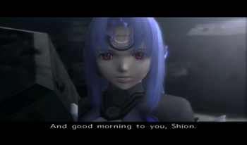 Yeah, more cryptic nonsense. Shion and KOS-MOS are related by some mystical nonsense? You don’t say.