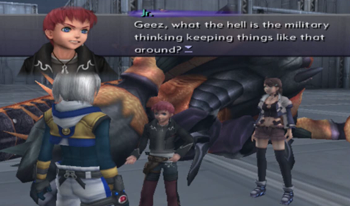 Oh yeah, I said I’d talk about exploiting the break gauge in our next combat-y update. I maintain that the introduction to the Break system is terrible, because it makes it seem like “this is how you beat bosses”, when it’s more like a random status ailment in most boss battles. In random battles, though, it can be amazing. Your average battle in XS3 doesn’t last very long, but you might be up against five (or more) monsters at once. What to do? Well, Ziggy is the damn champion of the break gauge, so feel free to have him “knock out” a combatant. Then you’ve got one less enemy to worry about for a round, and, by the time the creature has recovered, it might find that the rest of its cronies are long dead. This can be very useful in situations when you know one particular monster is a pain (like, say, due to using powerful attacks or annoying status ailments), so knock ‘em out of the game for a round, focus on the lesser mooks, and then come back for the killing blow later (maybe once your boost gauge is maxed out).