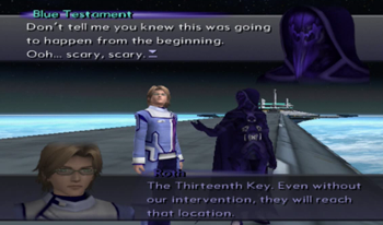 Also I guess someone in there is “the thirteenth key”. Whatever. However, I would be very happy to see a version of Xenosaga that is just Blue Virgil mocking all this enigmatic boloney all the time.