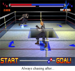 • Dungeon Times: There’s also a rogue-like 3-D beat ‘em up in there, as would be expected of the people that brought you Tobal No. 1. It’s very rogue-like, as you’ve even got a hunger meter to worry about, but I never played this mode for more than ten minutes because you can’t play as Cloud. What’s the point? At least magic in that area is said to come from “materia”, so that’s a step in the right direction.