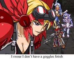 • Crossover Appeal: The hook of the Endless Frontier world is that it’s connected to other points in space and time, so the possibilities for different characters are “endless”. Unfortunately, aside from some refugees from Xenosaga and Namco X Capcom, BOUNTY HUNTERS!not much is done with the concept, and you basically just get oni girls playing with giant robots. Oh, and not-Han Solo, for some reason.