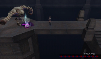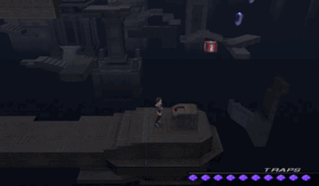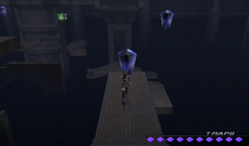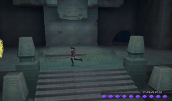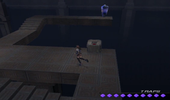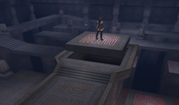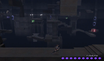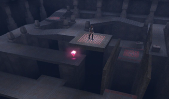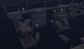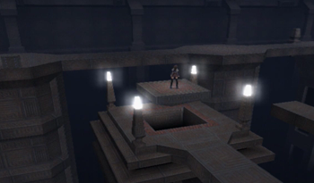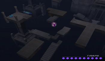 The gimmick of this temple involves pressing a series of switches to make bridges out of free floating Tetris blocks.