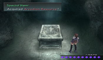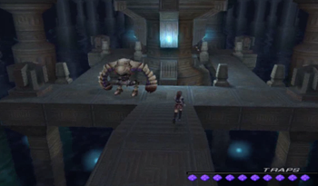 Oh yes, there’s a status effect that is unique to gnosis that is called crystallization. Remember how gnosis turn people to salt? Well, that is simulated with a “gnosis touch” that basically works like the gradual stone status effect in Final Fantasy 4. If you don’t cure an afflicted party member (and the cure is a consumable item [Anti-Crystal] you can find all over this dungeon), you’ll have a pillar of salt on your hands in about three turns. I’m moderately sure the gnosis bosses up to this point did not have this ability, but you see it a lot in this tomb.