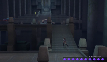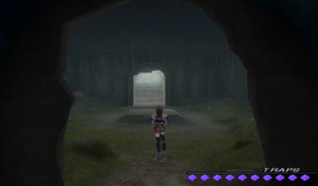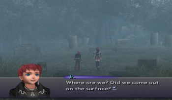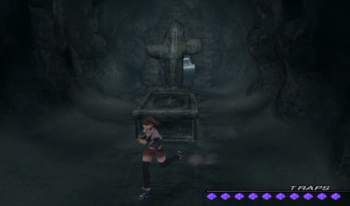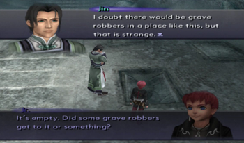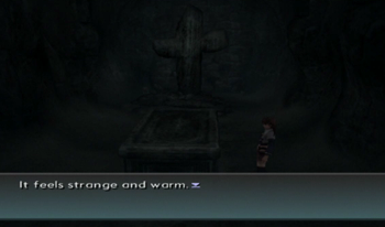 You’re given a moment to explore this area on your own, but, disappointingly, you can’t “click” on the tombs and read all the ES names. Kingdom Hearts 2 did this area so much better.